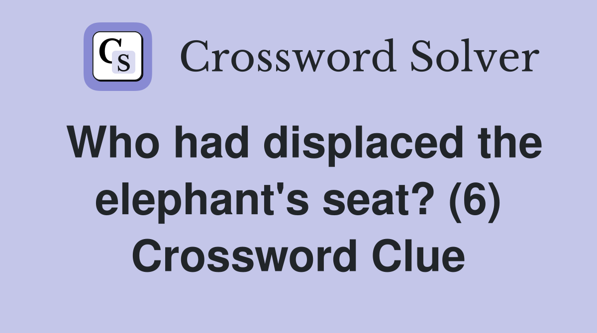 Who had displaced the elephant s seat? (6) Crossword Clue Answers