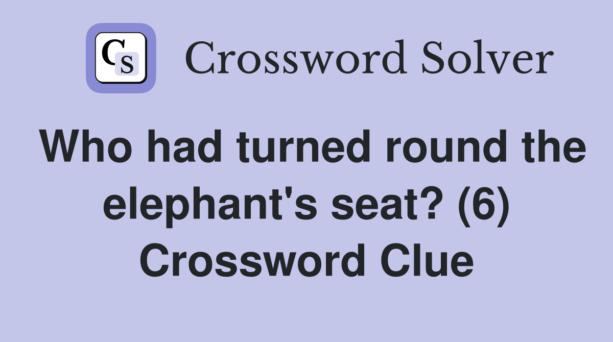 Who had turned round the elephant s seat? (6) Crossword Clue Answers