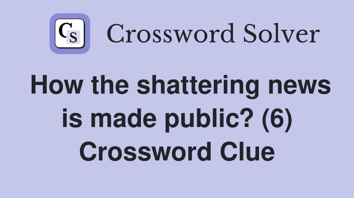 How the shattering news is made public? (6) Crossword Clue Answers