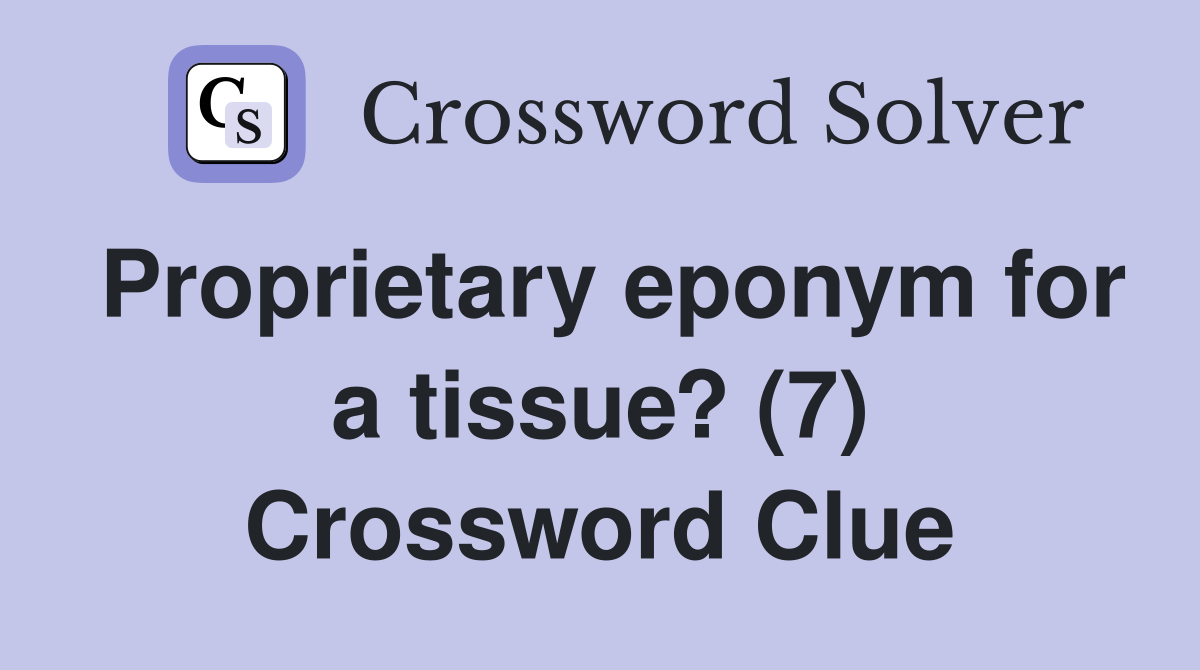 Proprietary eponym for a tissue? (7) Crossword Clue Answers