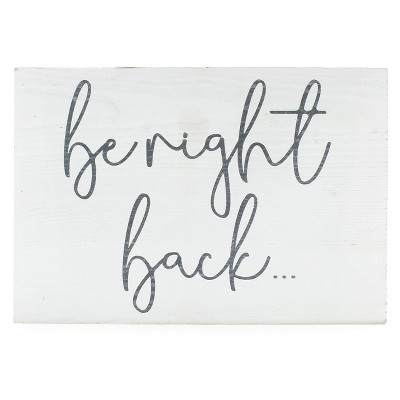 Decorae White Be Right Back Sign Wood Sign Free Standing or Hanging