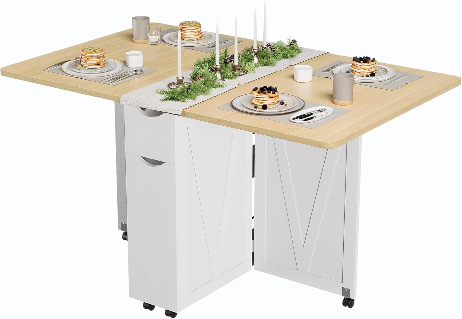Folding Dining Table with Drawer and Storage Folding Kitchen Table