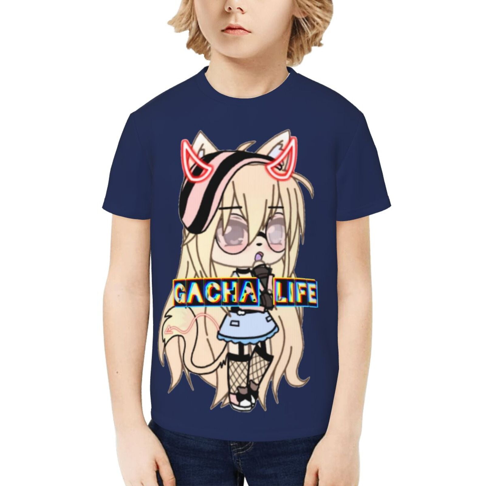 Gacha Life 3D printed short sleeved T shirt for men and women suitable