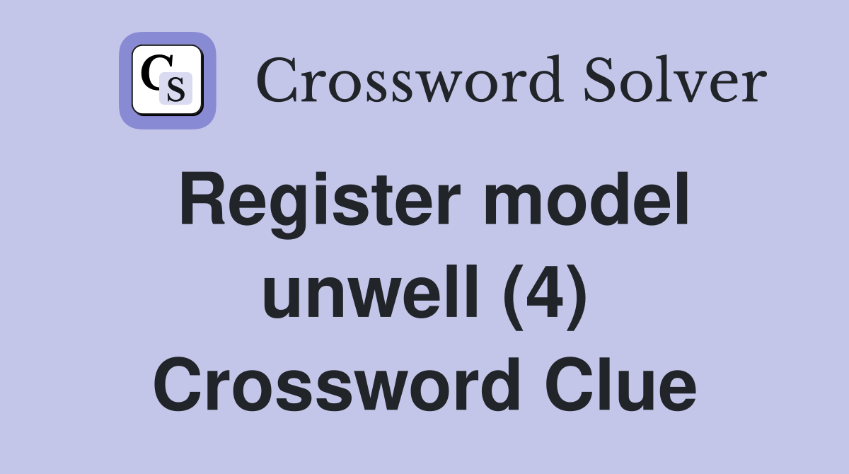 Register model unwell (4) Crossword Clue Answers Crossword Solver