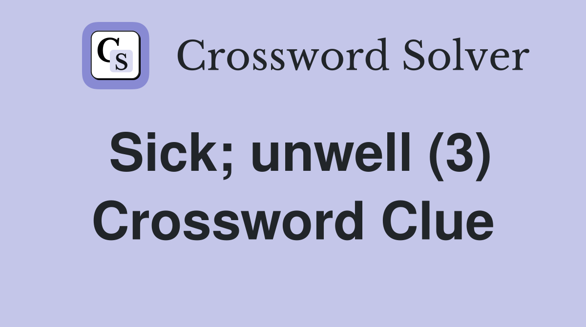 Sick unwell (3) Crossword Clue Answers Crossword Solver