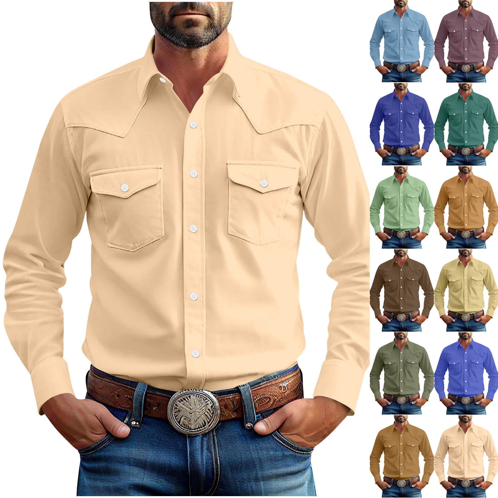 BXINGOHAI Mens Button Up Shirts Long Sleeve Button Down Shirts with Two