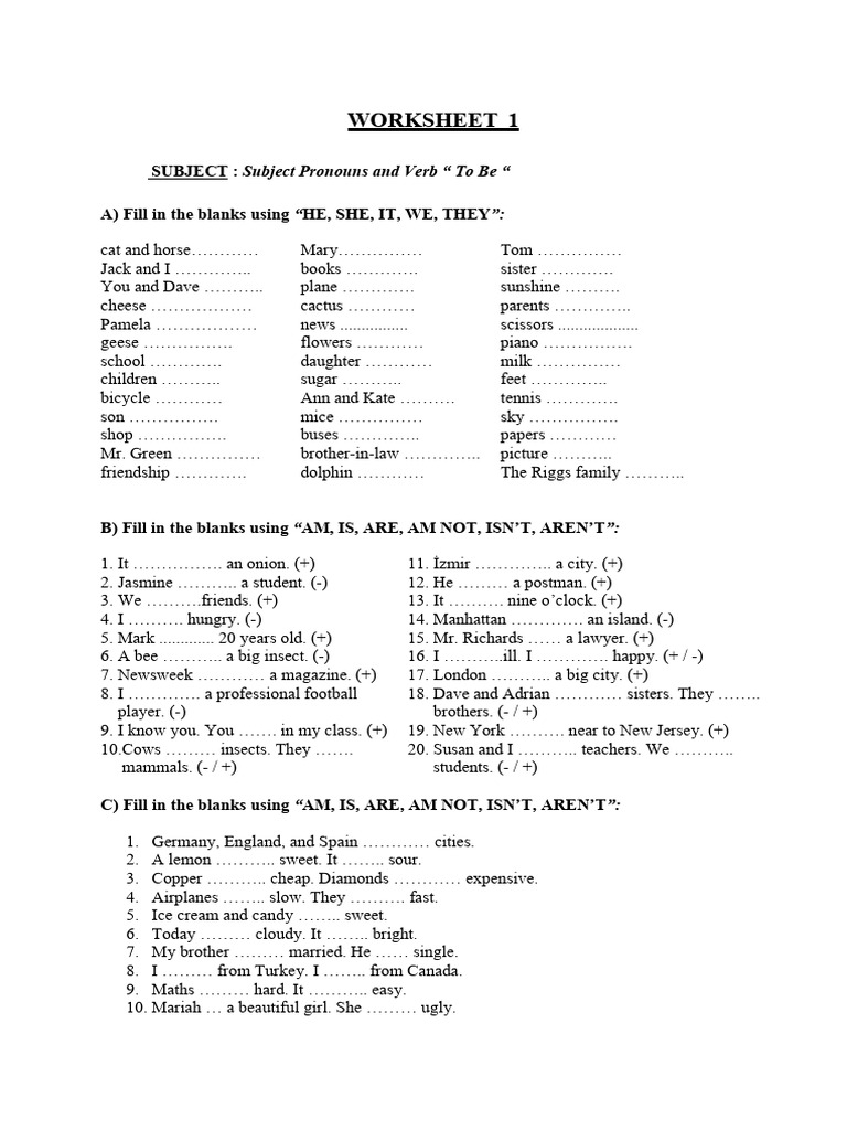 VERB TO BE WORKSHEET PDF Worksheets Library