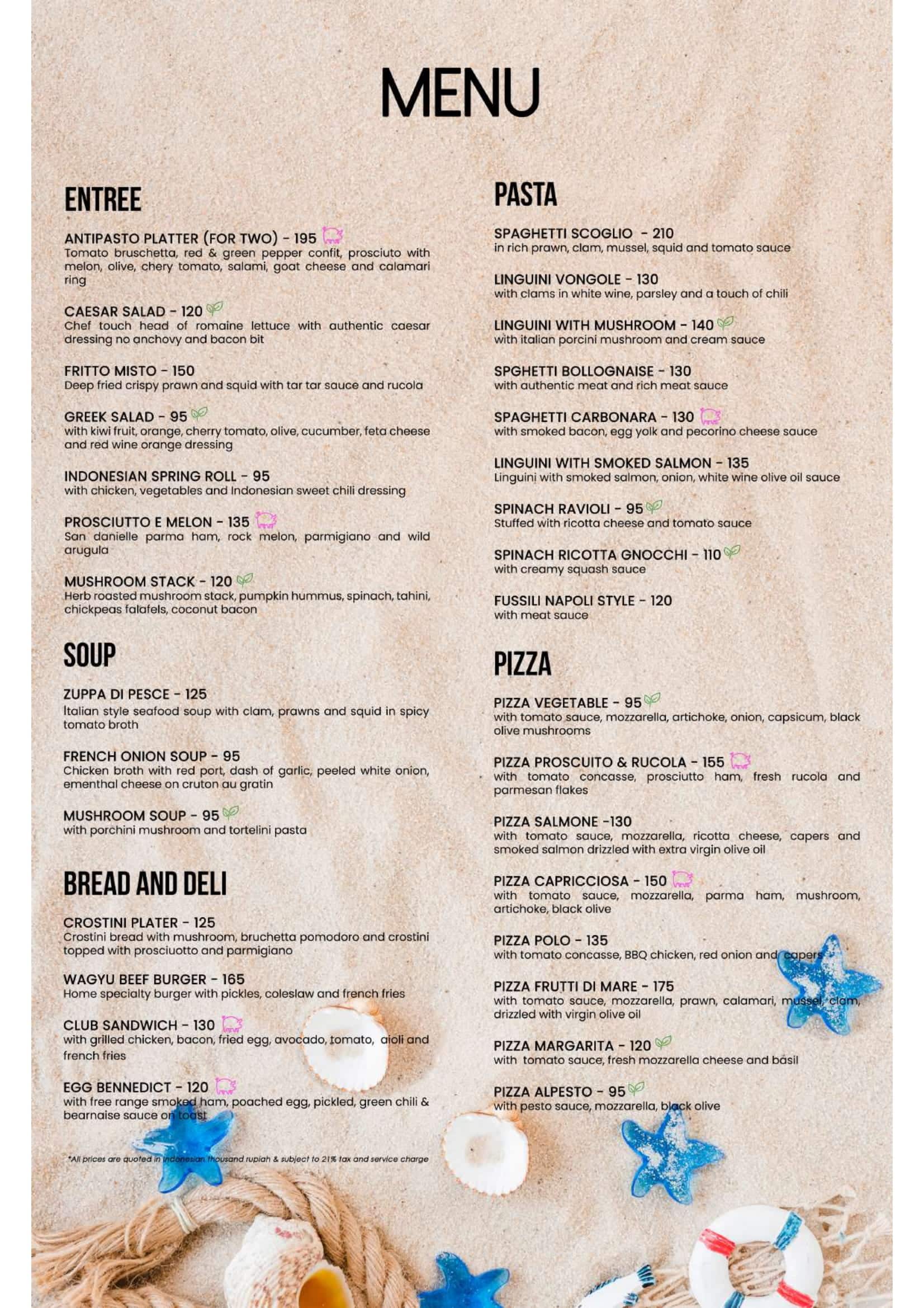 Menu at Beach Club Restaurant Denpasar a Beach Resort and Spa