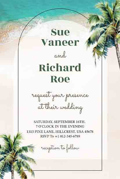 Page 2 Free custom printable beach wedding invitation templates Canva