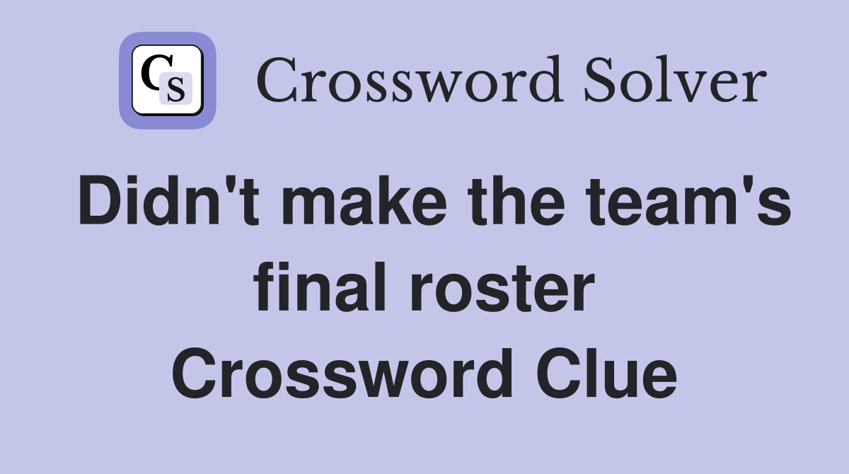 Didn #39 t make the team #39 s final roster Crossword Clue Answers