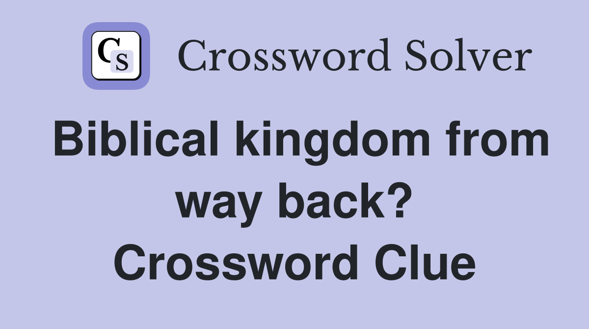 Biblical kingdom from way back? Crossword Clue Answers Crossword Solver