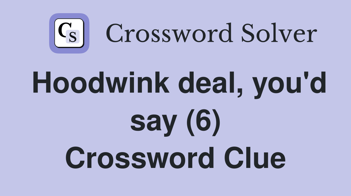 Hoodwink deal you #39 d say (6) Crossword Clue Answers Crossword Solver