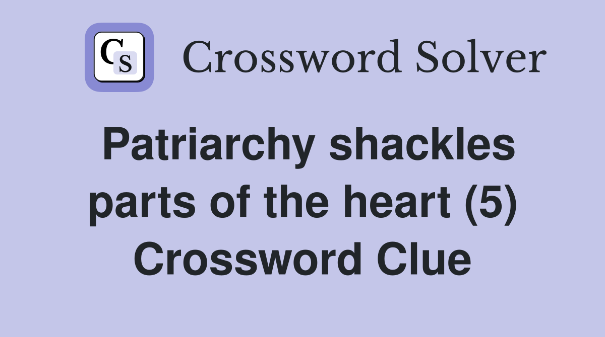 Patriarchy shackles parts of the heart (5) Crossword Clue Answers