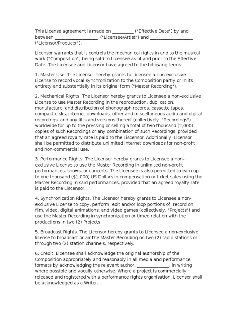 Beat Lease Contract PDF License Royalty Payment
