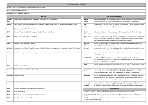 AQA A Level Russian History Knowledge Organisers Teaching Resources
