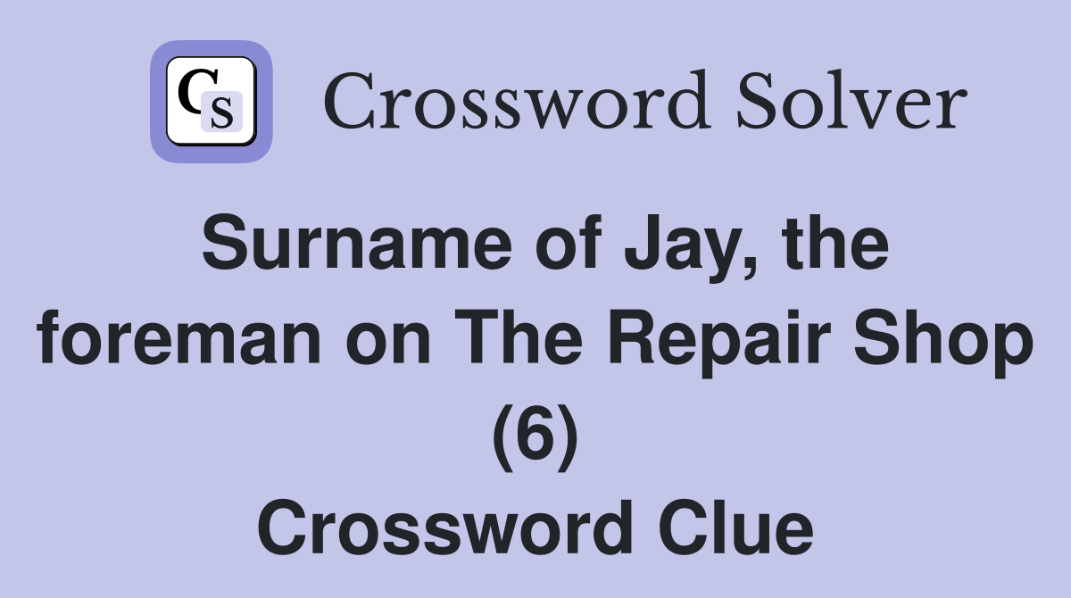 Surname of Jay the foreman on The Repair Shop (6) Crossword Clue