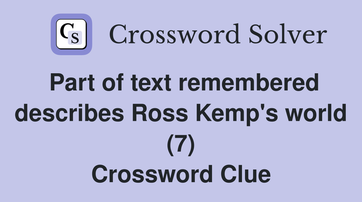 Part of text remembered describes Ross Kemp #39 s world (7) Crossword