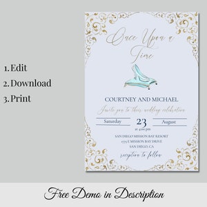 Beauty and the beast wedding invitation set printable fairytale wedding
