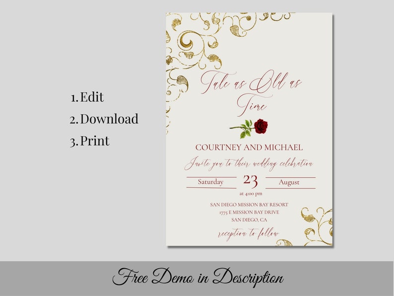 Beauty and the Beast Wedding Invitation Template Printable Etsy