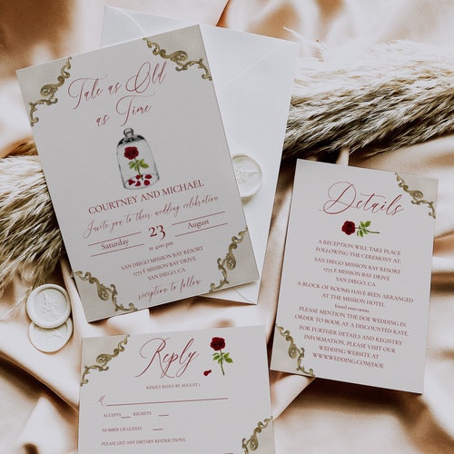 Beauty and the Beast Wedding Invitation Set Printable Etsy