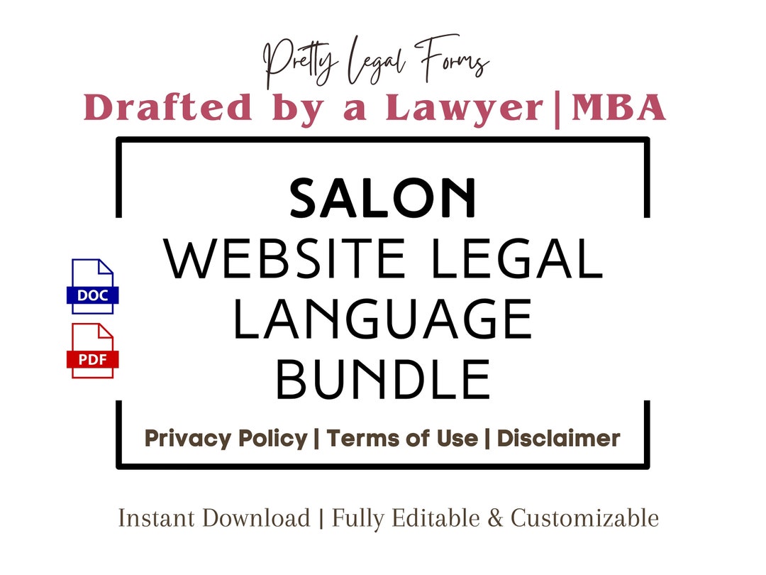 Salon Website Legal Language Bundle Hair Salon Terms of Use Privacy