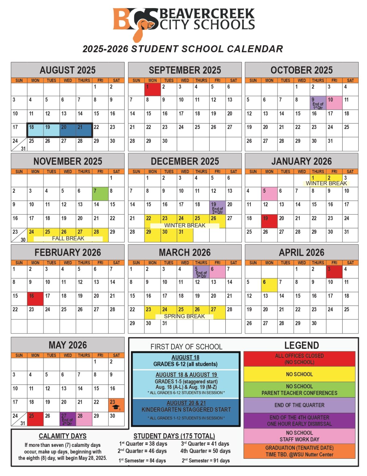 Beavercreek City Schools Calendar