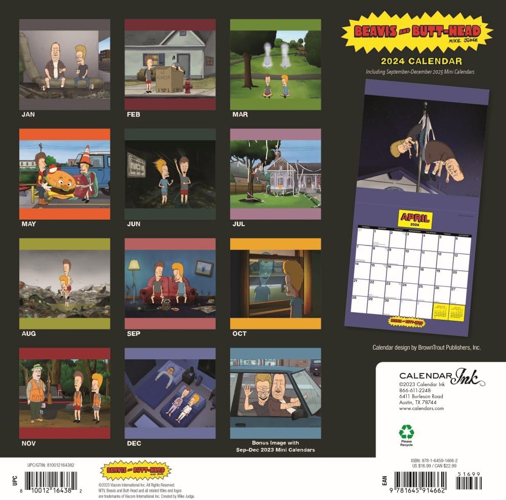 Calendar Ink Beavis andhead 2024 Calendario de pared Yaxa