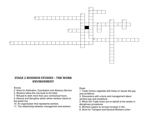 Industrial Relations Crossword Teaching Resources