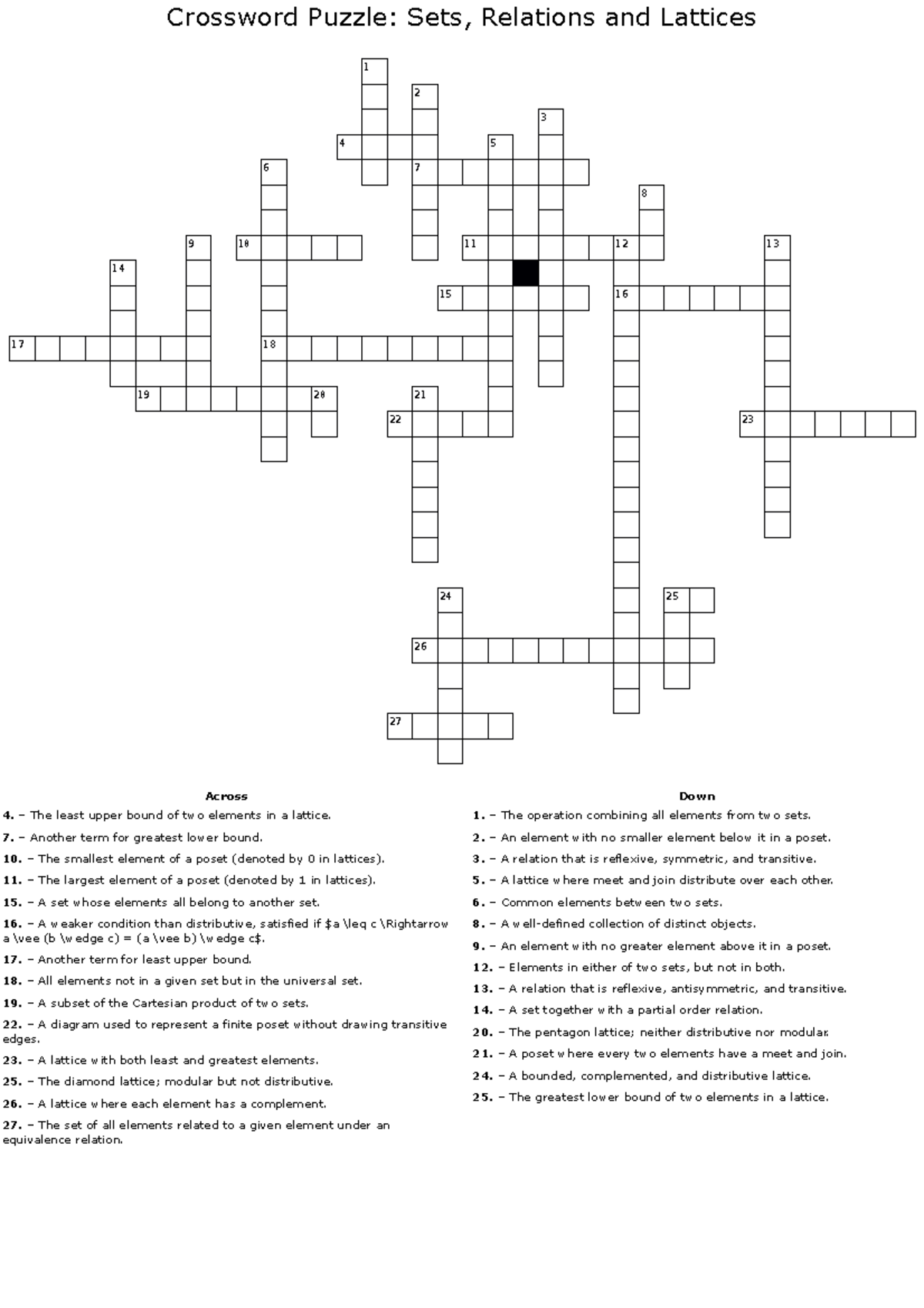 Crossword Puzzle: Sets Relations Lattices (CS101) Studocu