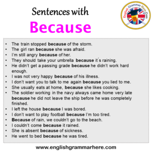 Uses Because in English 5 Example Sentences with Because Lessons For