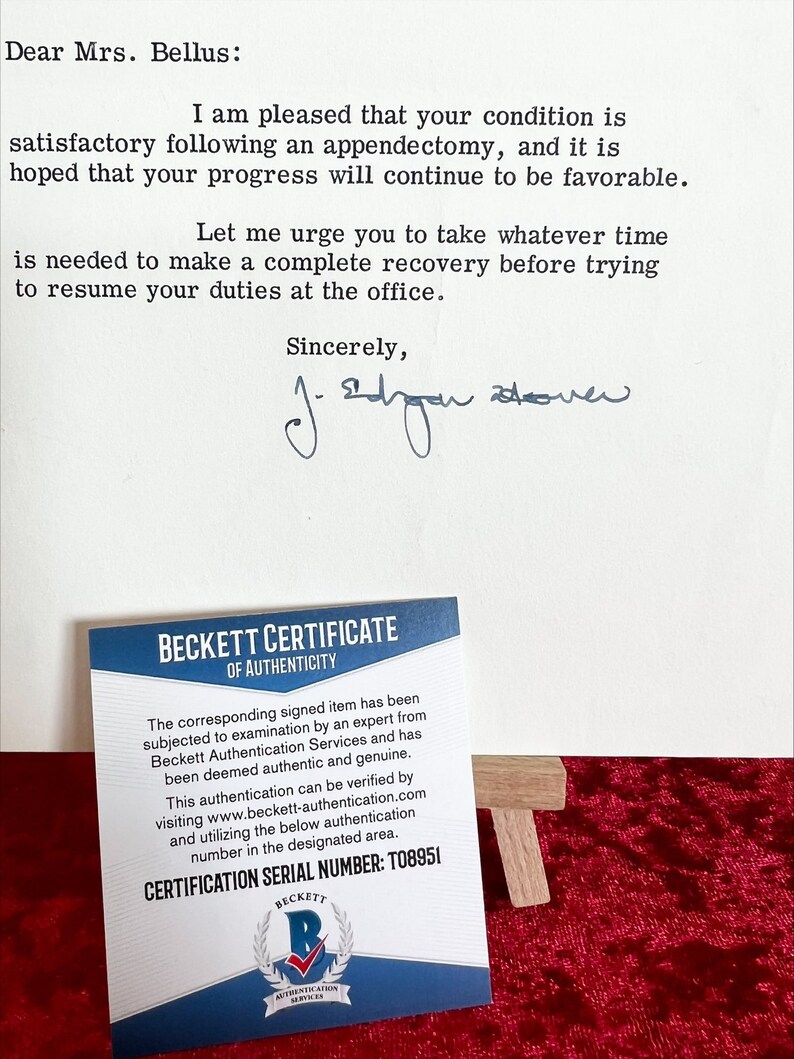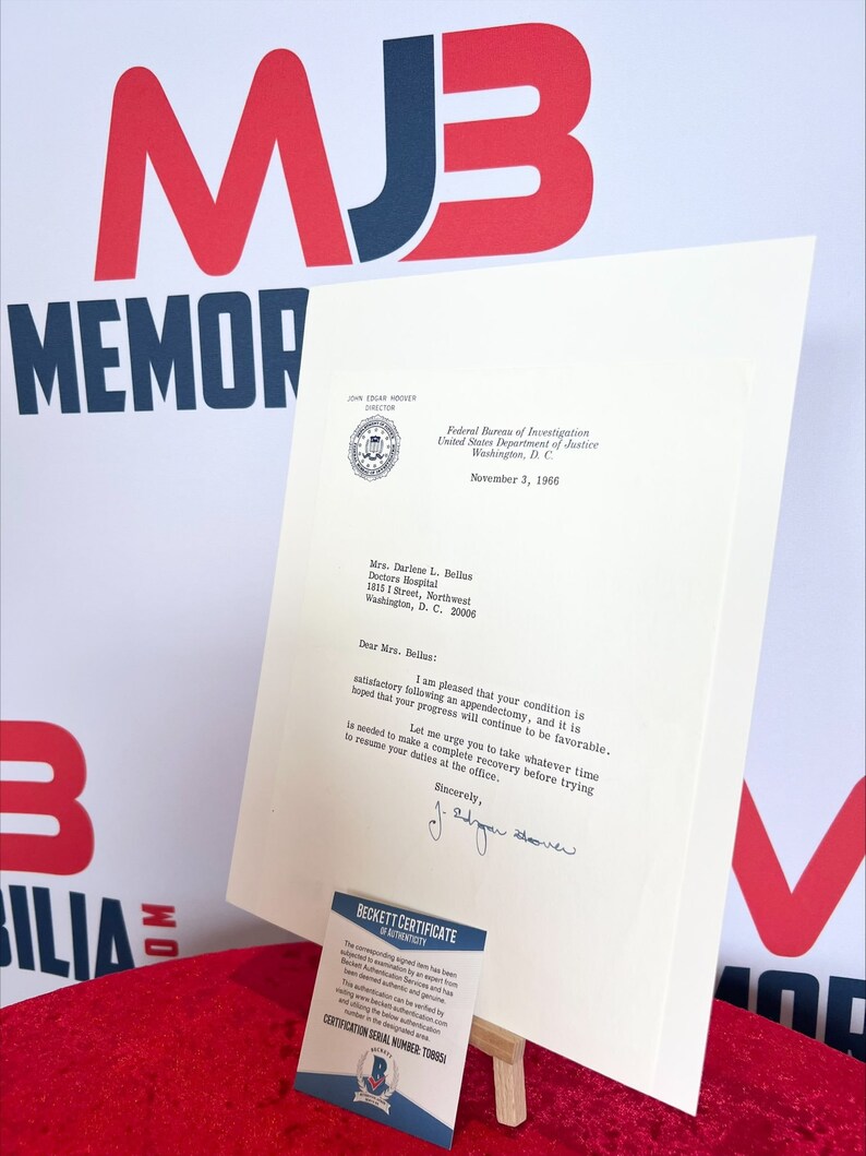 J Edgar Hoover Signed Original 1966 FBI Letter Beckett Authentication