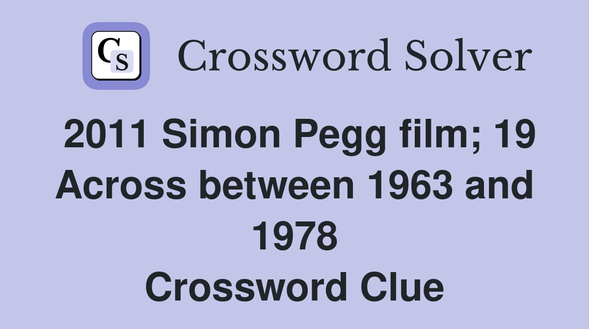 2011 Simon Pegg film 19 Across between 1963 and 1978 Crossword Clue