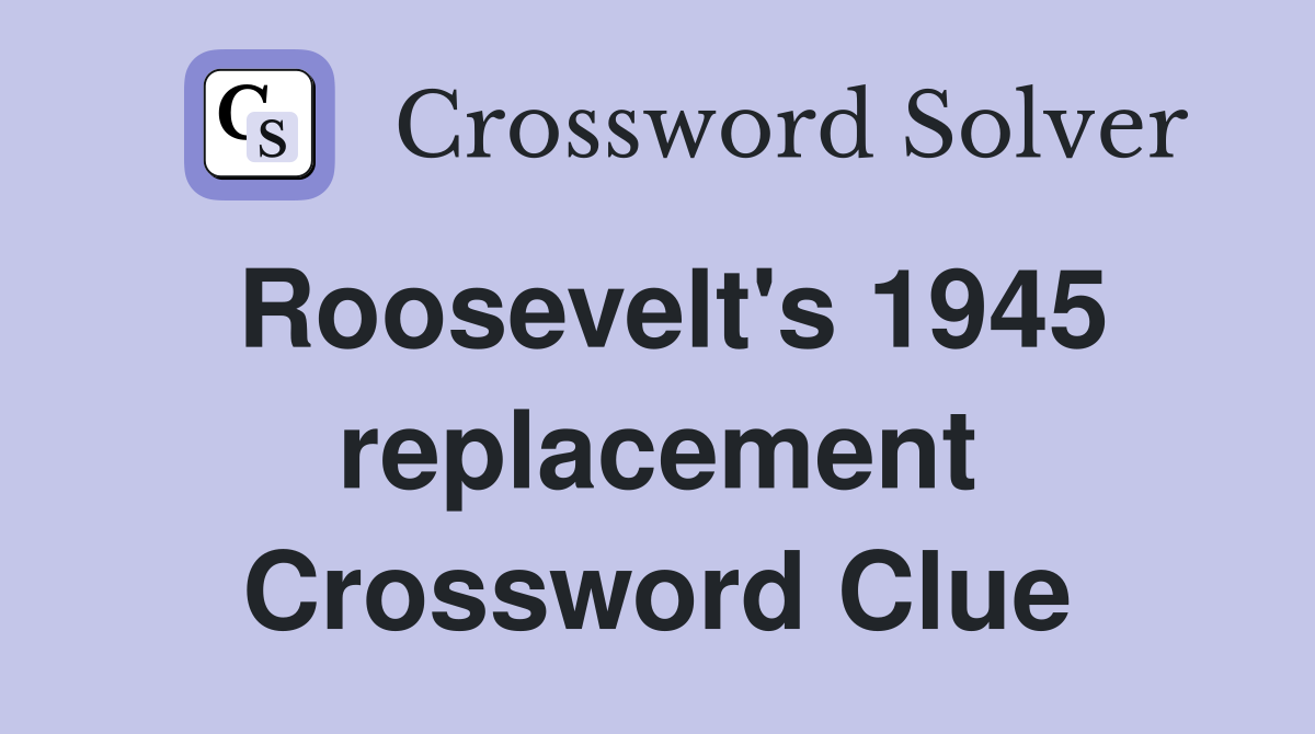 Roosevelt #39 s 1945 replacement Crossword Clue Answers Crossword Solver