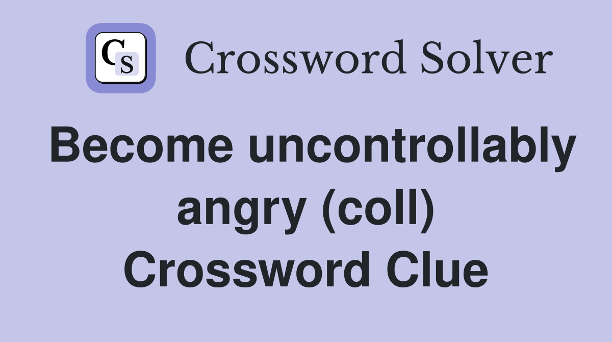 Become uncontrollably angry (coll) Crossword Clue Answers Crossword