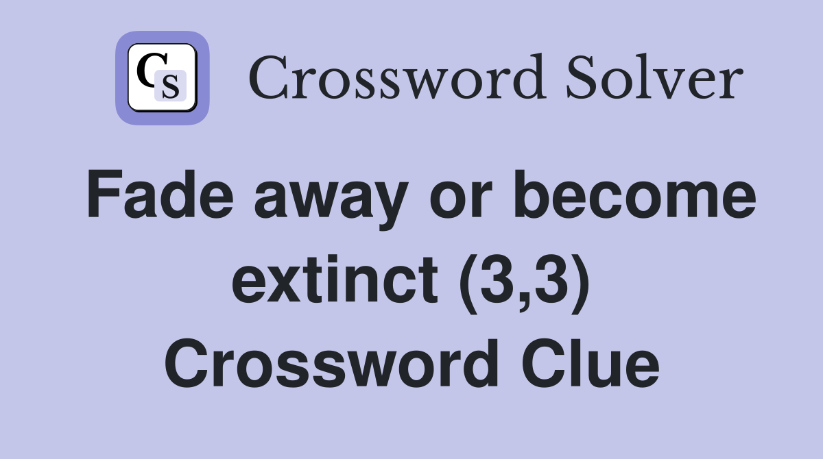 Fade away or become extinct (3 3) Crossword Clue Answers Crossword