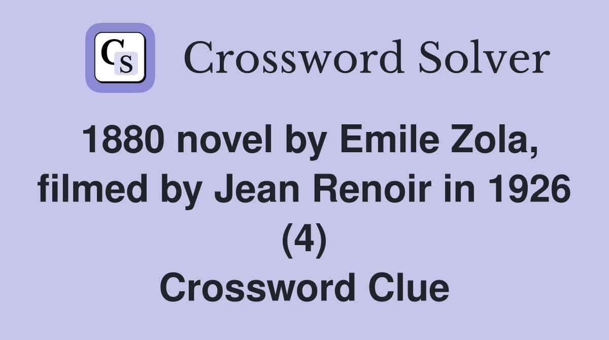 1880 novel by Emile Zola filmed by Jean Renoir in 1926 (4) Crossword