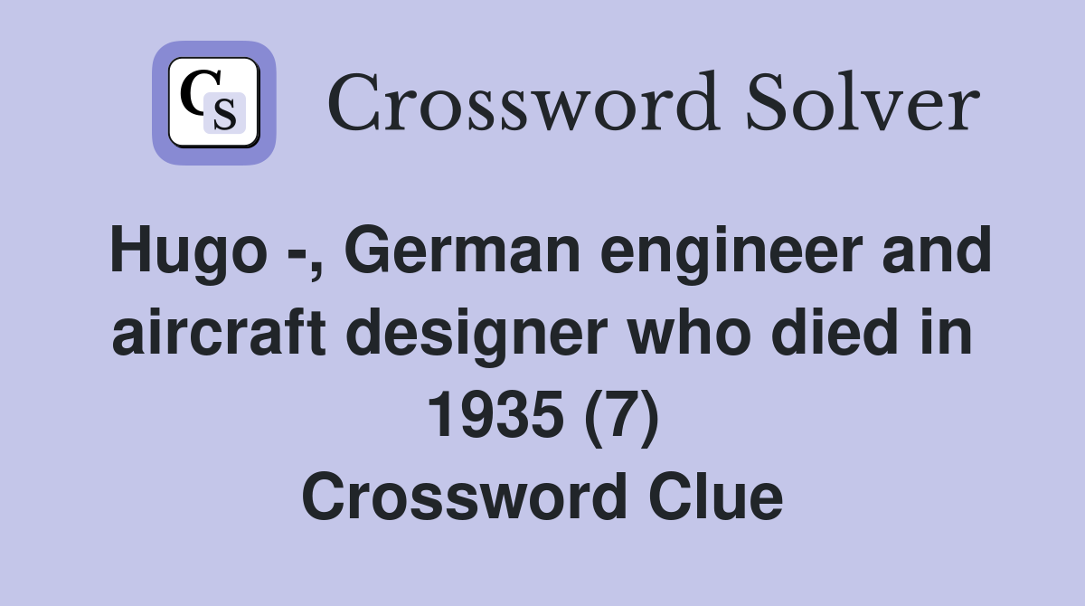 Hugo German engineer and aircraft designer who died in 1935 (7