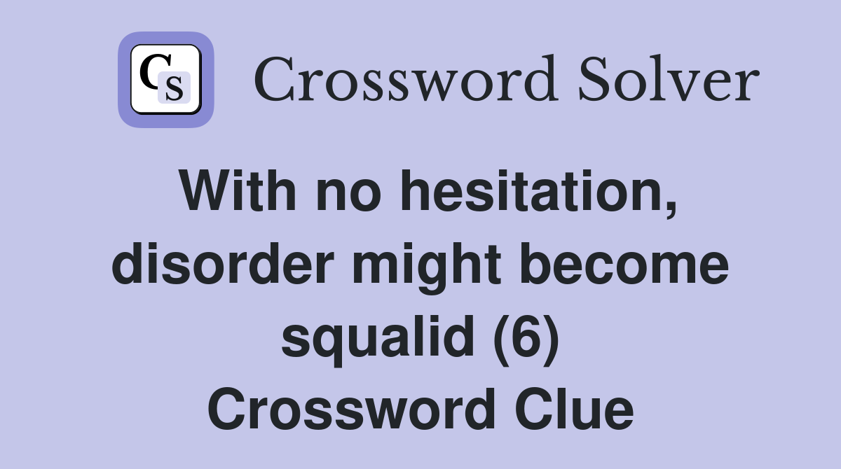 With no hesitation disorder might become squalid (6) Crossword Clue