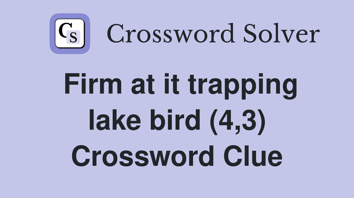 Firm at it trapping lake bird (4 3) Crossword Clue Answers