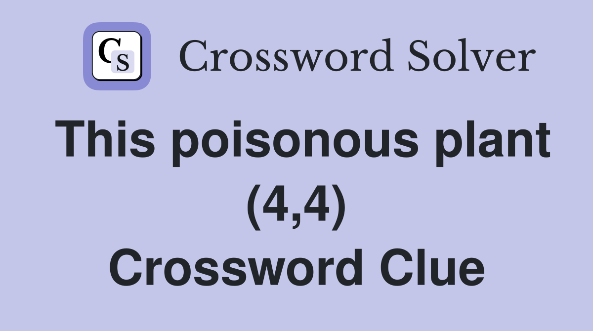 This poisonous plant (4 4) Crossword Clue Answers Crossword Solver