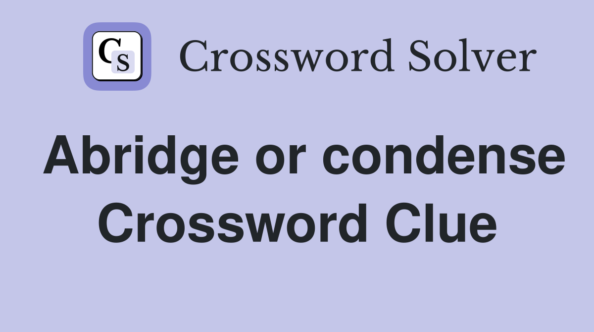 Abridge or condense Crossword Clue Answers Crossword Solver