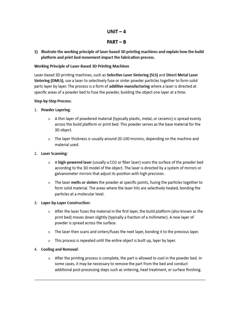 3D Unit 4 Answers PDF 3 D Printing Industrial Processes
