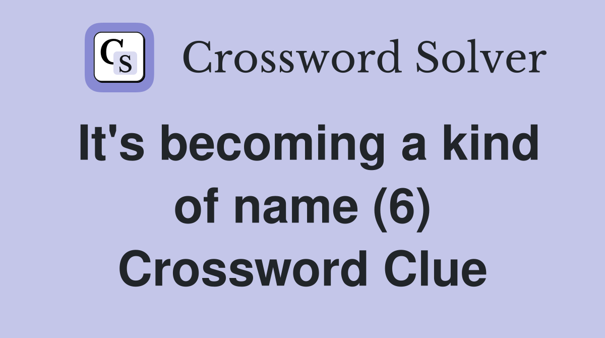 It #39 s becoming a kind of name (6) Crossword Clue Answers Crossword