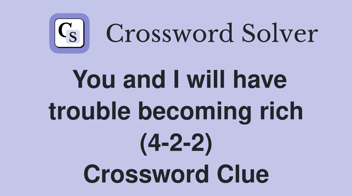 You and I will have trouble becoming rich (4 2 2) Crossword Clue