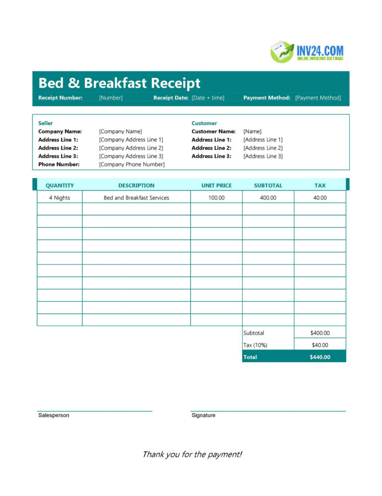 Create Your Own Bed and Breakfast Receipt Template Easily TemplateData