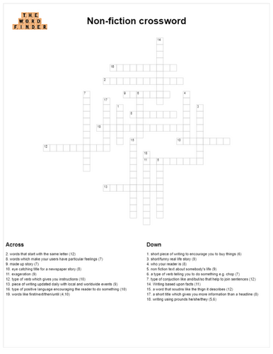 Non fiction crossword Teaching Resources