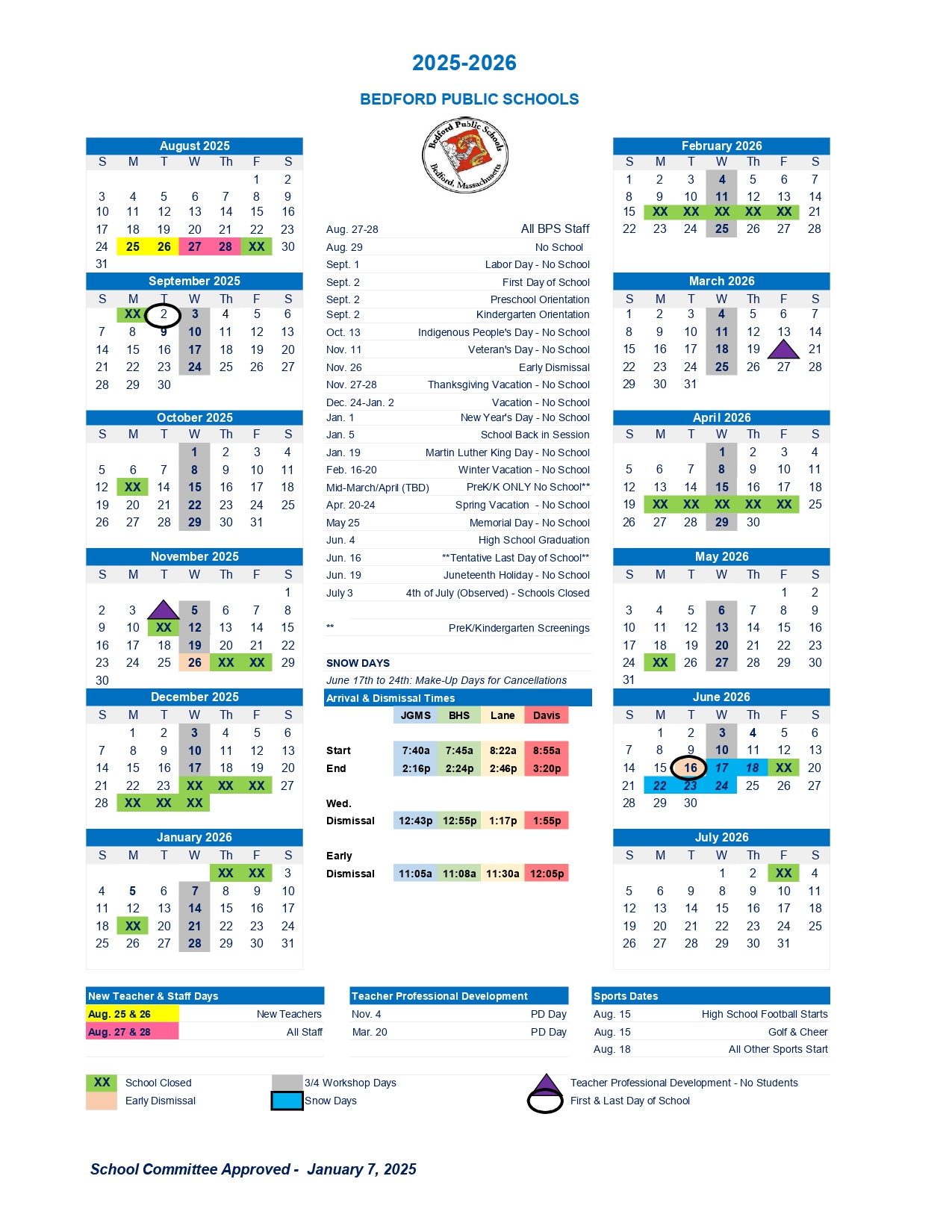 Calendar Bedford Public Schools