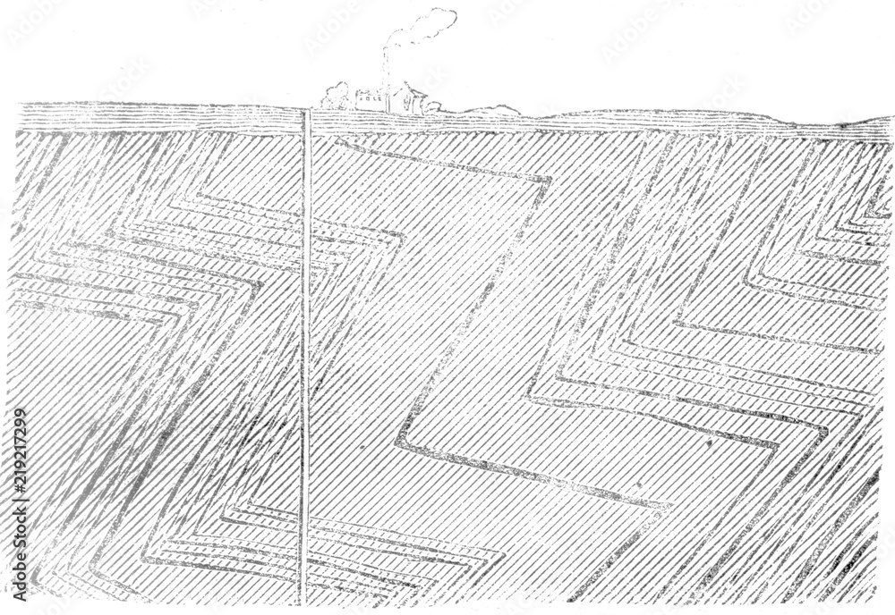 Section of the land around Mons showing the layout of coal beds in the