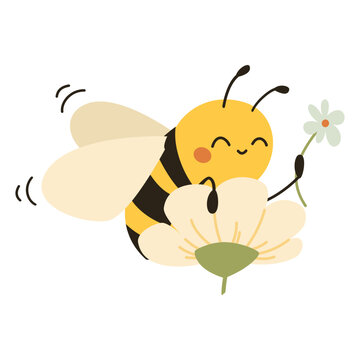 Premium Vector Cartoon Cute Happy Honey Bee on White Background