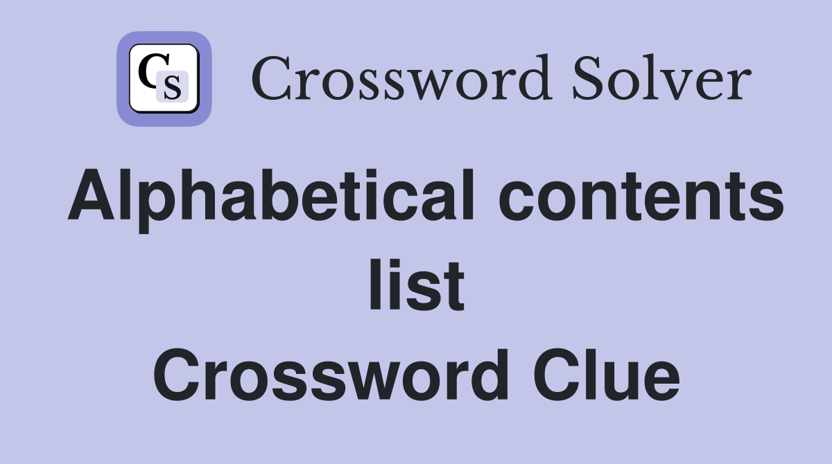 Alphabetical contents list Crossword Clue Answers Crossword Solver